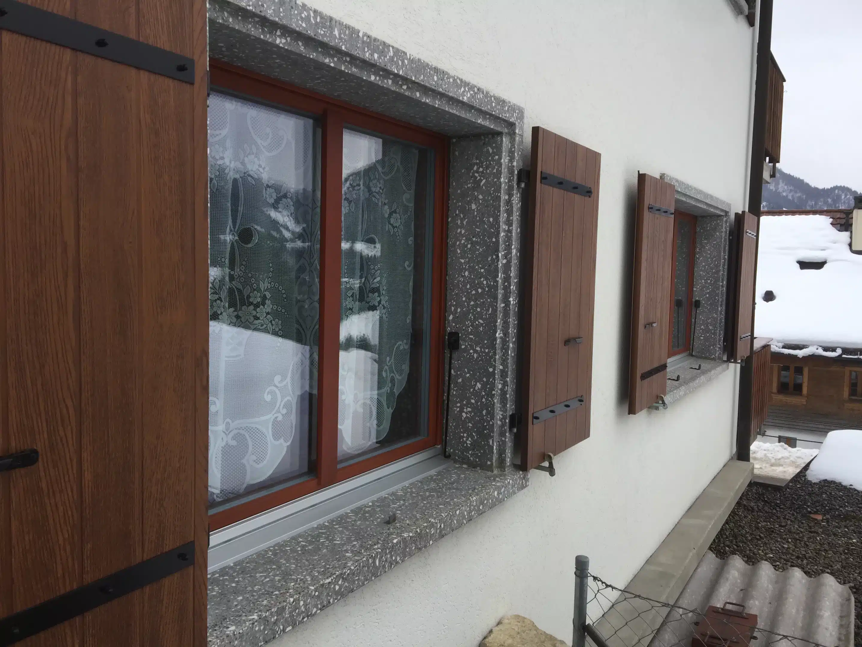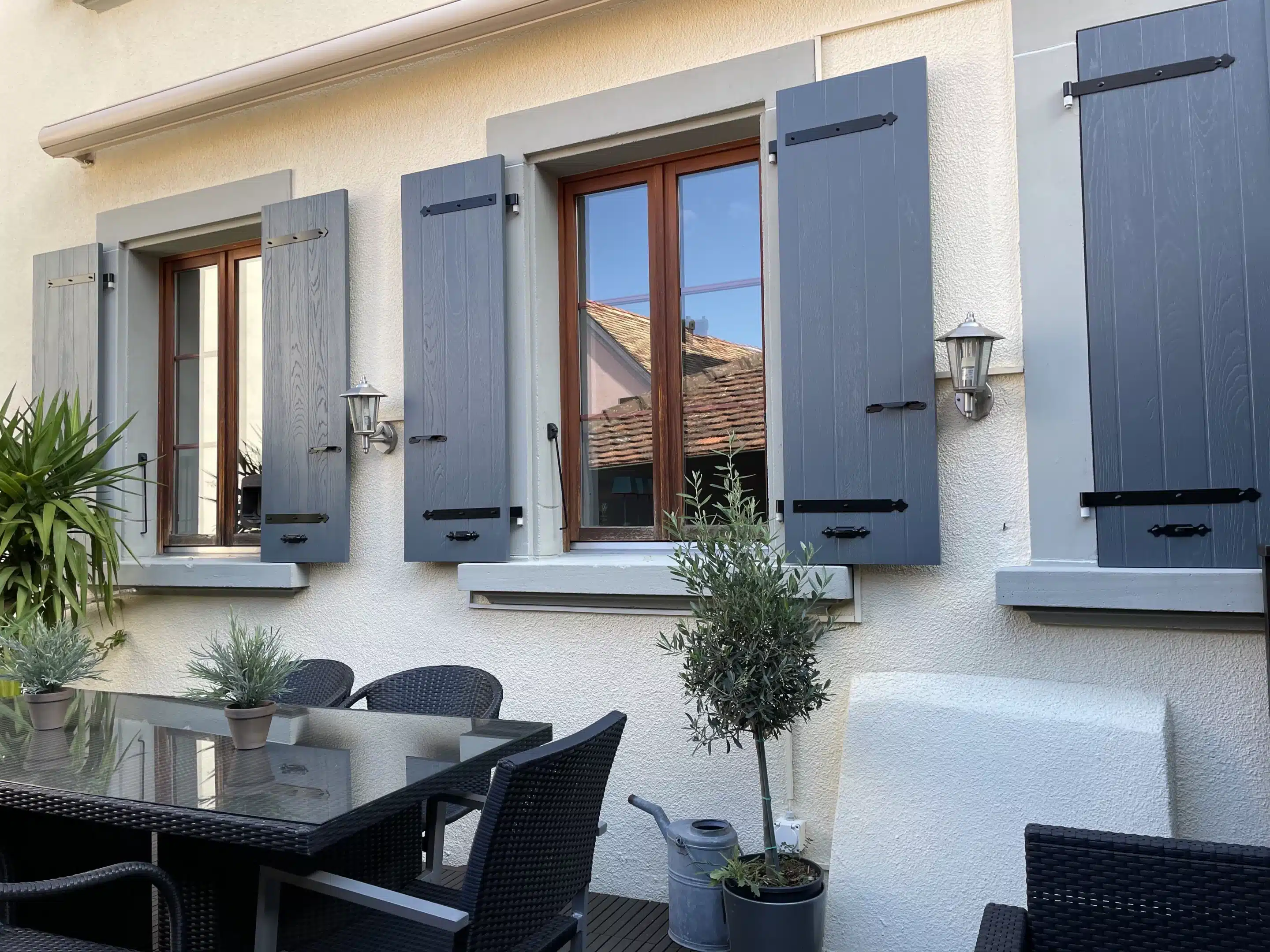 À Belmont-sur-Lausanne, Fermro Sàrl, distributeur exclusif des volets en composite Polyhabitat, a installé des volets approuvés par la commune, avec une table de balcon assortie.